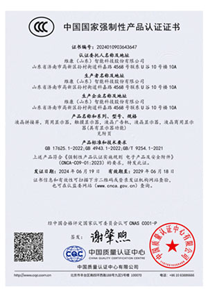公司通過了CCC認證、節能認證、環境標誌產品認證、公安部安全與警用電子產品質量檢測中心檢測報告(CNAS認證) 、ISO9001、14001、18001、CE、CB、FCC、ROHS、抗震防塵等多項資質認證,並入選《政采節能產品清單》。